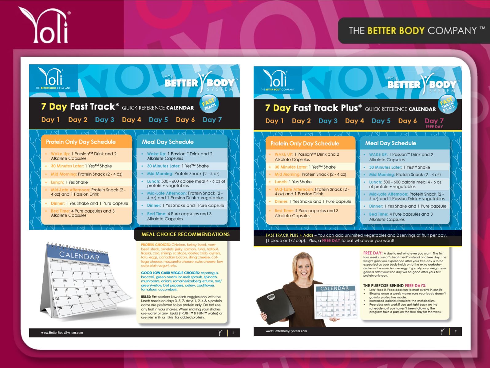 To give you an idea of how the program works, here is the 7 day Fast Track and Fast Track Plus quick reference calendar: